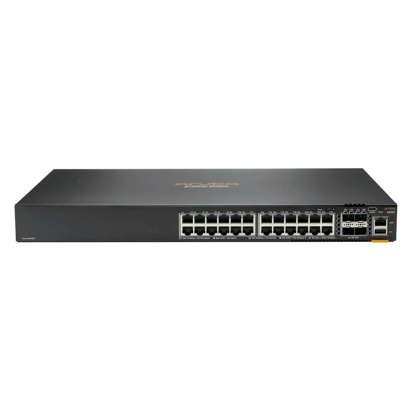 HPE Aruba Networking Aruba CX 6200F 24G Class-4 PoE 4SFP+ 370W. Switch-Typ: Managed, Switch-Ebene: L3. Basic Switching RJ-45 Ethernet Anschluss-Typ: Gigabit Ethernet (10/100/1000), Anzahl der basisschaltenden RJ-45 Ethernet Anschluss: 24, Konsolen-Port: RJ-45/USB Type-C. MAC-Adressentabelle: 32768 Eintragungen, Routing-/Switching-Kapazität: 128 Gbit/s. Netzstandard: IEEE 802.1AX, IEEE 802.1D, IEEE 802.1Q, IEEE 802.1ab, IEEE 802.1ak, IEEE 802.1p, IEEE 802.1s, IEEE. Energie Über Ethernet (PoE) Unterstützung. Rack-Einbau, Formfaktor: 1U